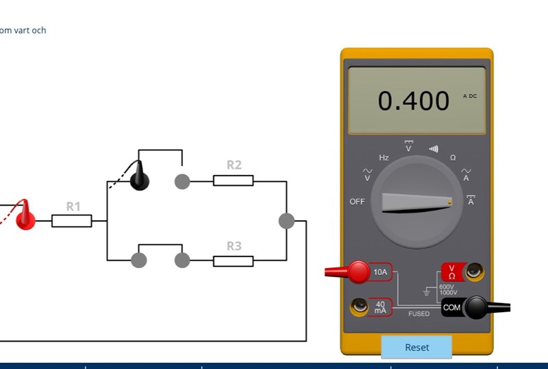 Jag kan bara använda mig av ström (A likström) och spännng (V likspänning). Det går inte att sätta multimetern på andra än dom...