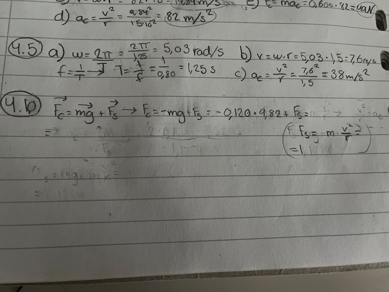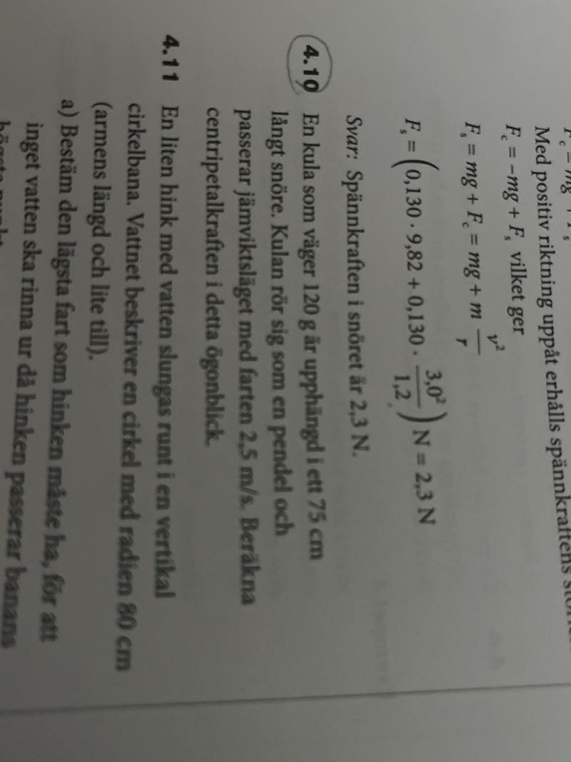 Med v=2,5 m/s, r=0,75 m, m=0,12 kg får vi