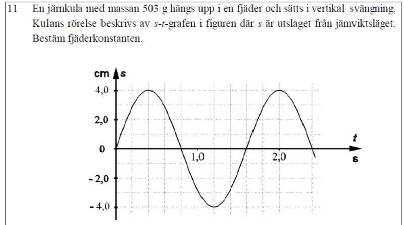 Det finns en samband mellan fjäderkonstanten och svängningstiden. Så jag använde mig av T= 2π √m/k