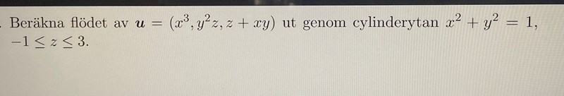 Jag har räknat ut div u och fått fram 7pi. Men jag förstår inte hur jag ska räkna flödet av locket och botten av cylindern.