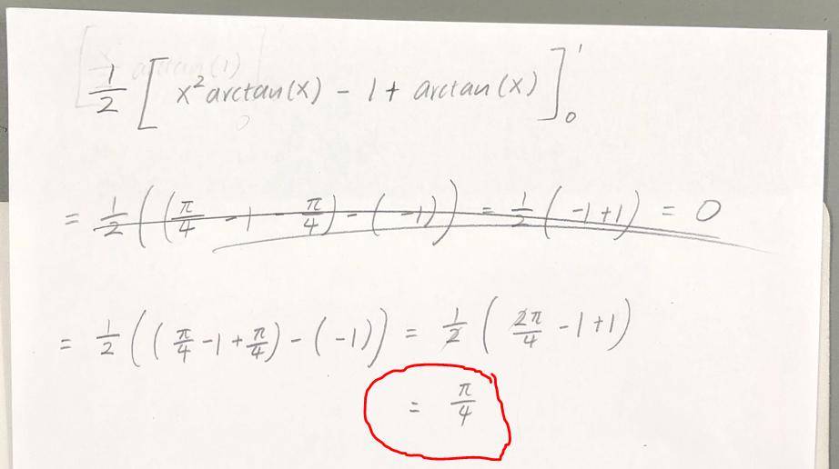 Varför har ja fått pi/4 inte pi/4-1/2 i facit.