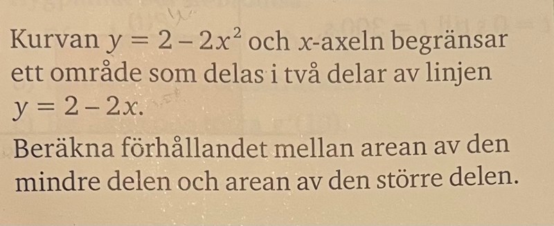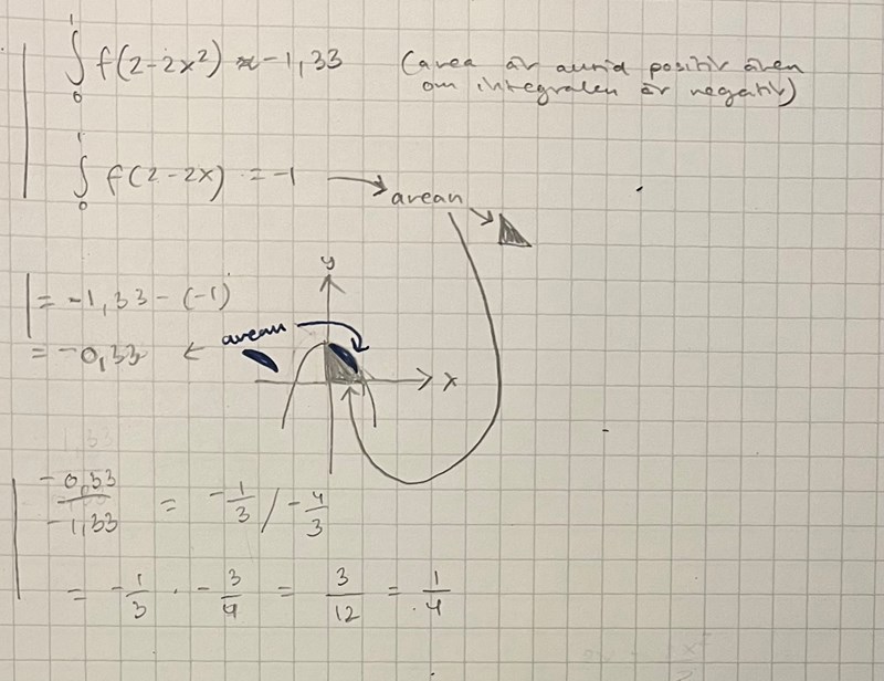 Ingenting faktiskt, vet inte varför jag gjorde så nu när jag tänker efter. Det kanske var för att uppgiften innan bara ville att man skulle beräkna området i första kvadranten, så det tankesättet var kvar…😅