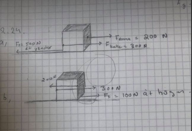 Jag har svarat på uppgift 2.24 b att friktionskraften är 100 N åt höger men vad jag ser på en video från Youtube, läraren säger att det är 100 N riktade mot vänster ? Vem har rätt här ?