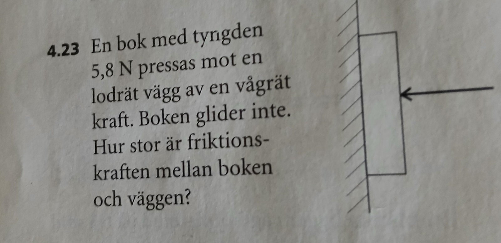 Beräkna friktionskraften mellan boken& väggen