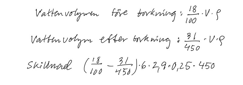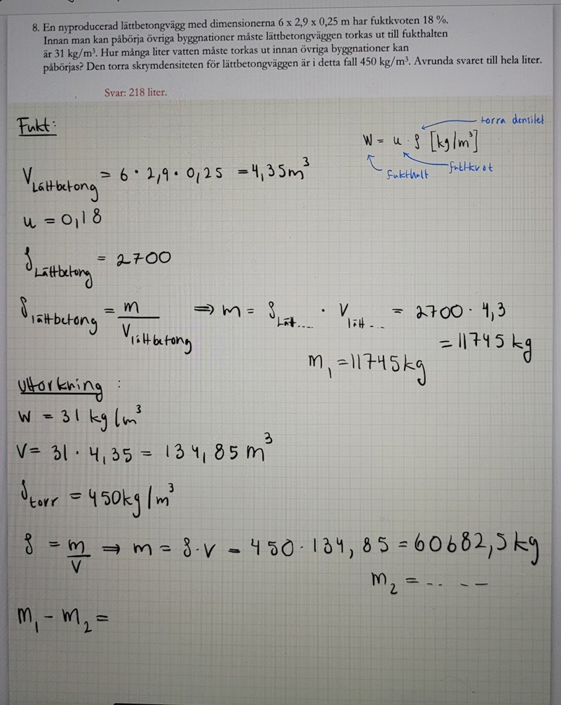 Jag vet att detta inte är rimligt eftersom när något uttorkas så ska massan bli mindre. Jag vill ta m1-m2 men fastnar. Hur kan jag komma vidare?