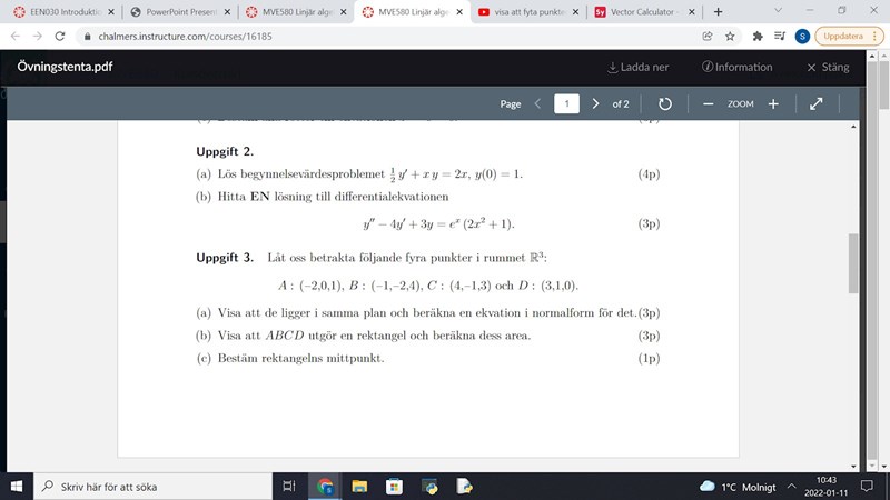 Detta är dock fel eftersom ekvationen på normalform skall vara: -x+16y+11z = 13.