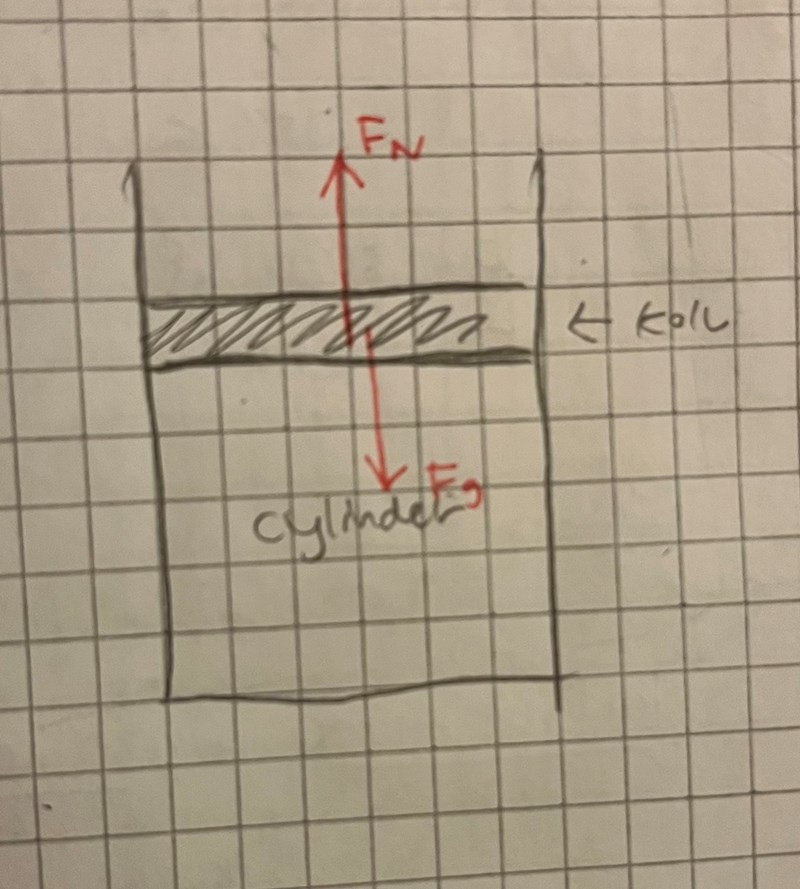 Du bara ritar något och kallar det "normalkraft" fast kolven ligger inte mot en yta.