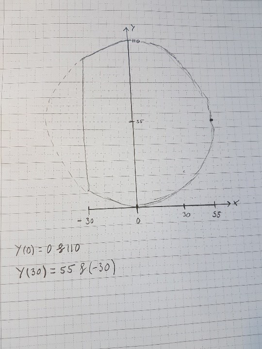 Men ser inte hur jag ska hitta en funktion, fram till +- 30 på x-axeln är det ju en andragradsfunktion, men sen sticker det iväg och blir en (för mig) oklar funktion.