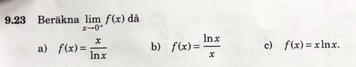 Som ni kan ser, ja har börjat med skriva om a) till något som går att beräknar gränsvärde på. Men min omskrivning har inte funkat.