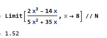 Hej! Jag har problem med denna uppgift ” beräkna gränsvärdet lim x-> 8 (2x^3 - 14x)/(5x^2 + 35x)