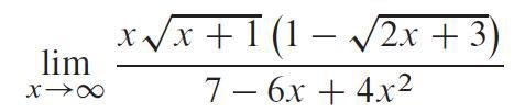 förstår att jag ska försöka bryta ut x i täljaren så att jag på något sätt får x i kvadrat så de tar ut varandra efter att jag delat täljare och nämnare för att sedan låta x gå mot oändligheten
