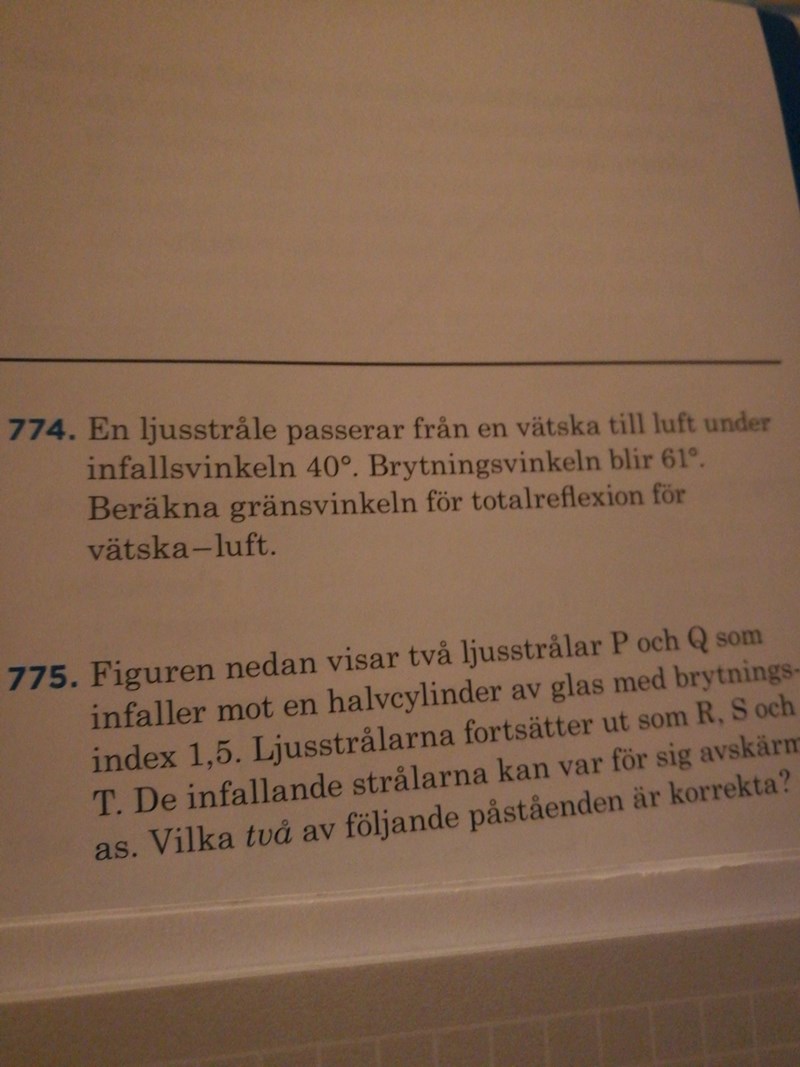 Dr. G skrev:Och hur stor är gränsvinkeln för totalreflexion?