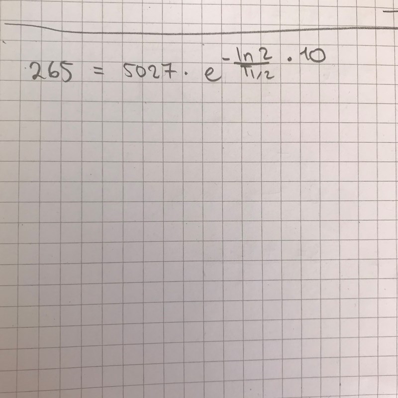 I början av experimentet uppmättes 5027 pulser per minut. 257 av dessa kommer från bakgrundsstrålningen. Alltså bör 5027 - 257 = 4770 pulser per minut då komma från preparatet.