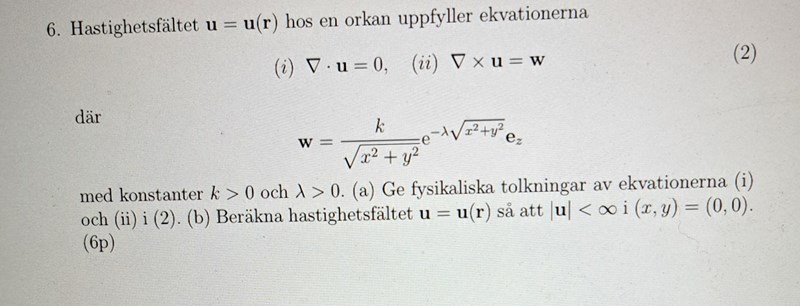 Känns lite övermäktigt att ställa upp divu = 0 och rotu = w rent generellt och försöka lösa. Men det är 6p.