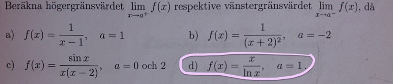 Jag har fråga, beräkna höger respektive vänstergransvärde då: