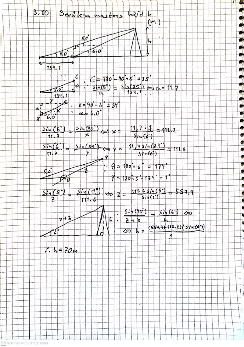 a(tan(6)-tan(5)) = 134,1 tan(5)