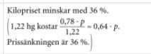 Beräkna hur många procent kilopriset sänktes med på en reklamkampanj