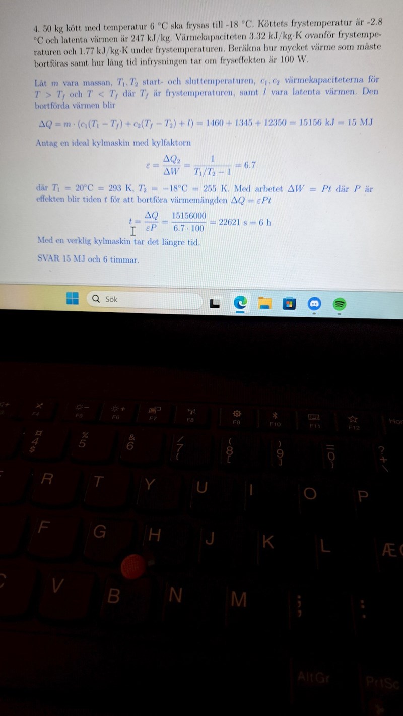 Beräkna hur mycket värme som måste bortföras samt hur lång tid