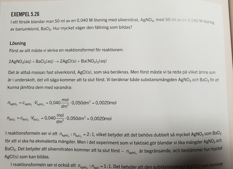På produktsidan har du bariumnitrat. Barium har laddningen +2, så det behövs två nitratjoner för att bilda saltet. Detta gör att det behövs två silvernitrati på reaktantsidan, så då bildas det två silverkotid och det behövs en bariumklorid, eftersom det finns 2 kloridjoner i den.