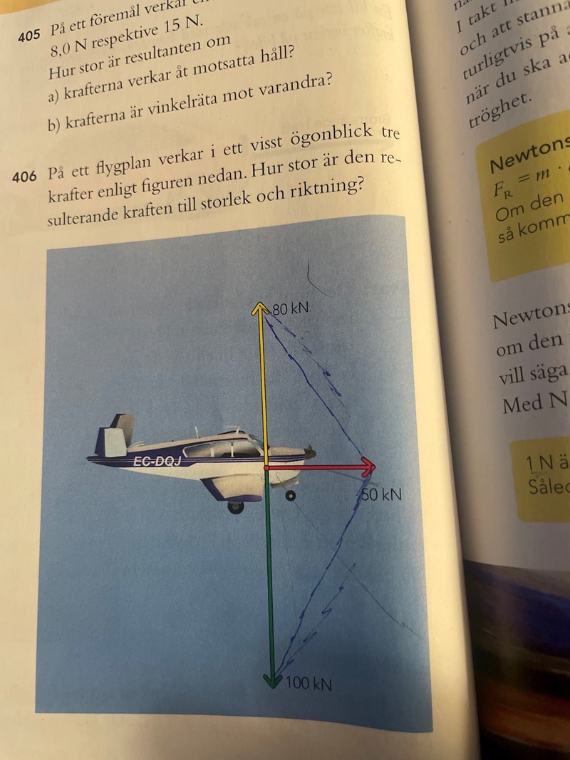 Beräkna hur stor den resulterande kraften till storlek och riktning