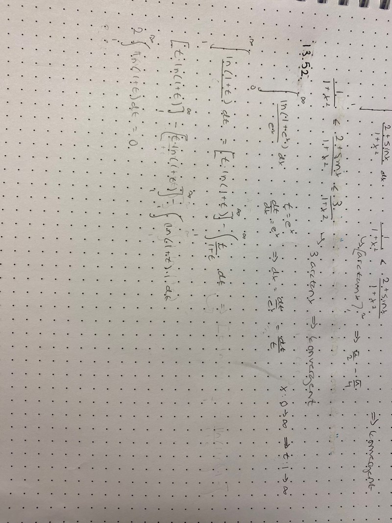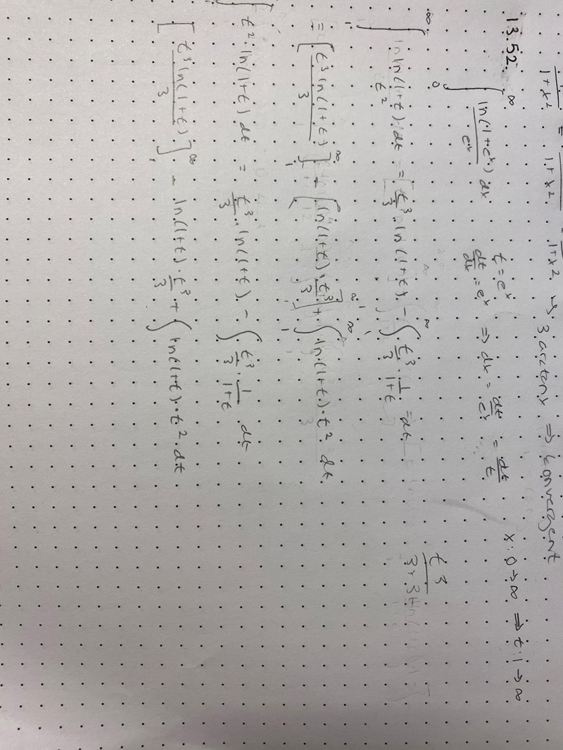 :na i nämnaren tar inte ut varandra i detta fall. Testa göra partiell integration härifrån!