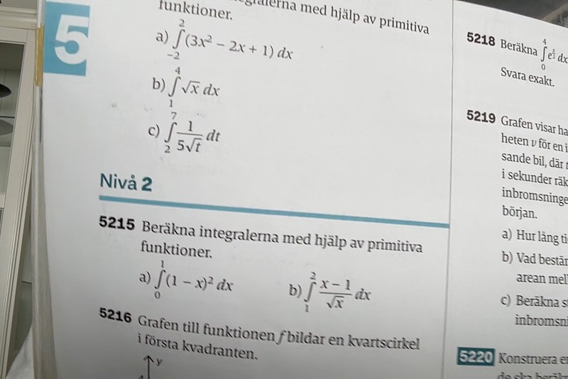 På denna uppgift försökte jag först hitta primitiva funktionen och fick då: