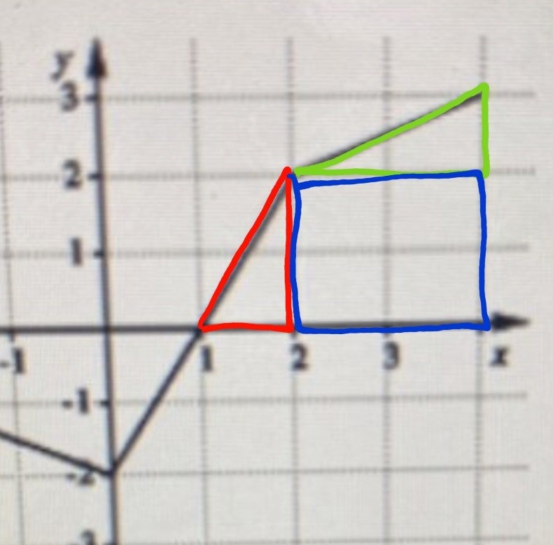Area 3 (grön triangel): 2*1/2= 1a.e