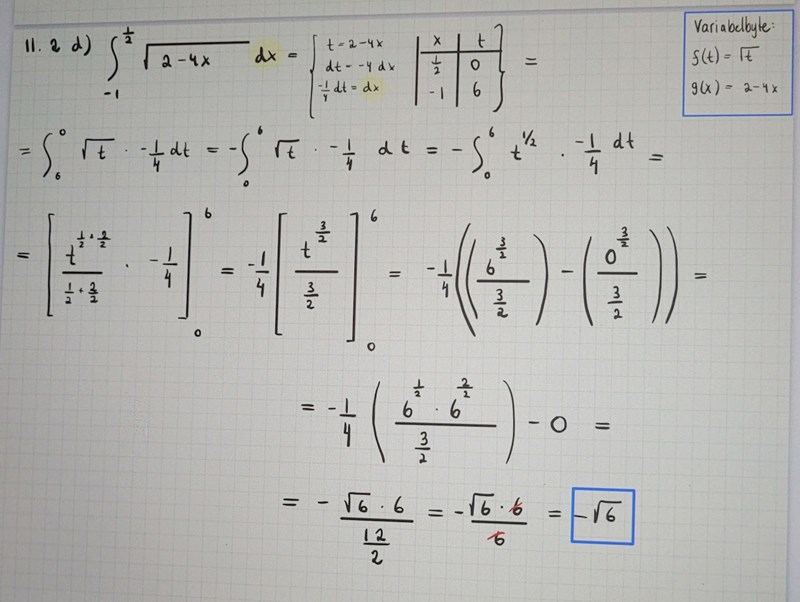 Du gör en variabelsubstitution, inget fel med det, men du verkar vara en rätt driven integrallösare, kanske kan du hitta den primitiva direkt om du skriver om funktionen som