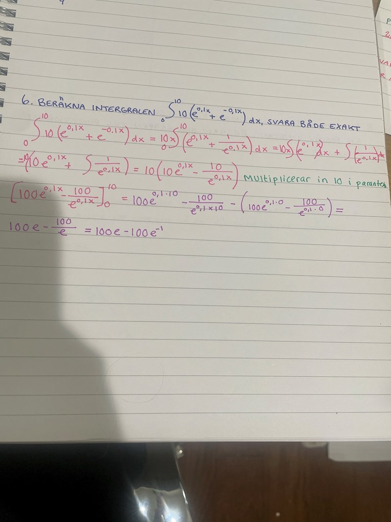 stämmer denna uträkning? Tänker speciellt på svaret 100e-100e^-1?