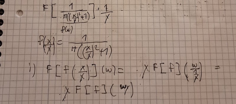 Ok. Men i den andra formel vii vet jag inte hur man ska jämföra. Så fouriertransformen av p(x,y) är helt enkelt F[e^-y|x|](w). Jag vet inte om man ska tänka F[t(w)](x)=1/pi*(1-cosw)/w2
