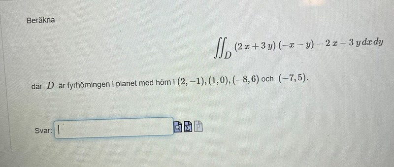 Beräkna integralen där D är fyrhörningen i planet med hörn i 4 punkter.