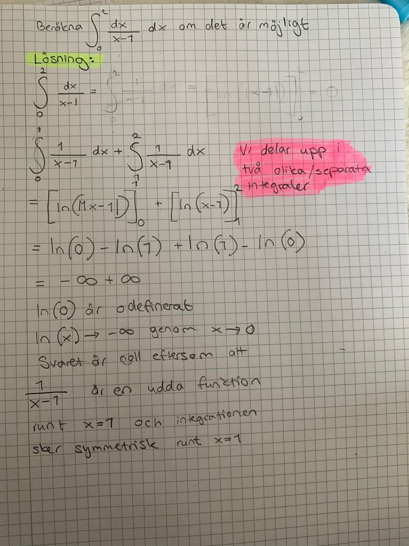 D4NIEL skrev:Integralen är inte konvergent på intervallet .