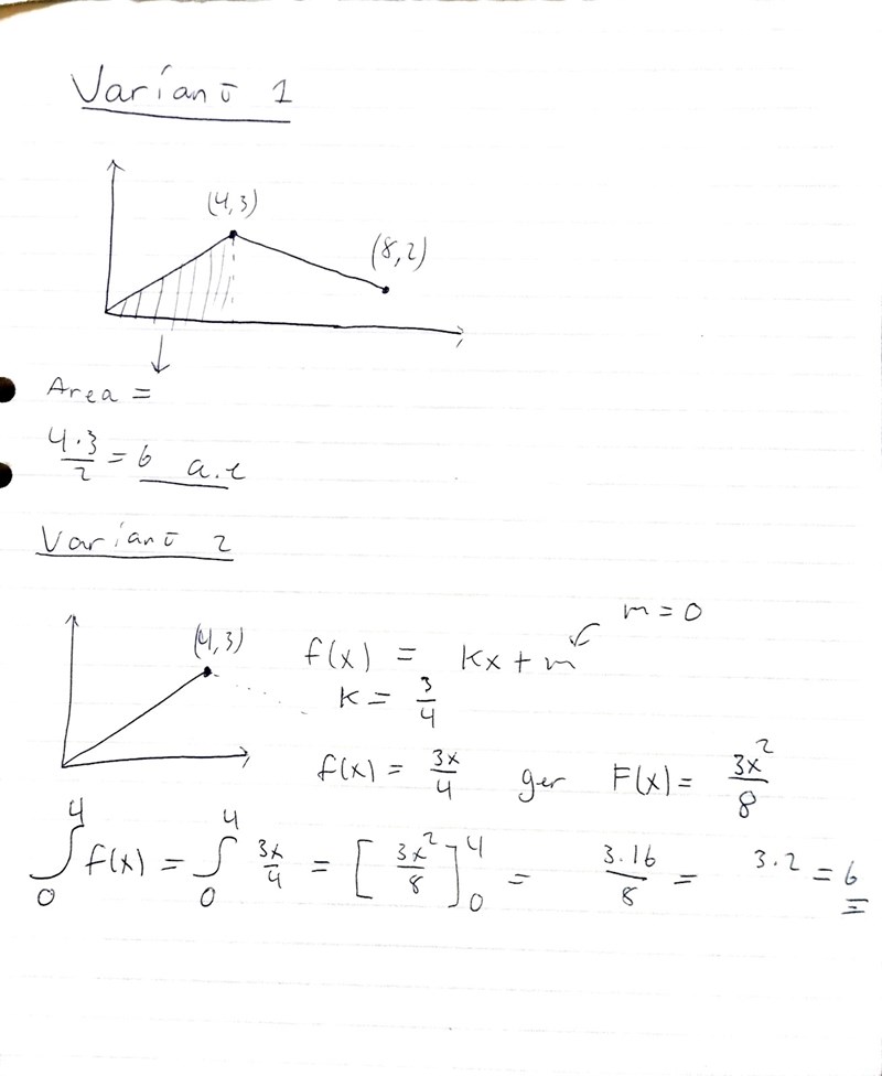 Jag har då tänkt att eftersom integralen ska till x=4, så har jag gjort om x=4 till (x-4). Detta vet jag inte är rätt, men jag vet inte hur jag ska börja med detta problem. Jag vet hur man räknar ut integralen mha Integralkalkylens fundamentalsats, däremot vet jag inte hur man gör om man ej vet funktionen innan man gör om det till primitivt.