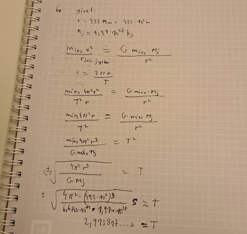 Jag fick omloppstiden i s men facit fick 1,77 dygn. Obs jag glömde att det ska vara 2,9138*10^32 s. Hur får jag samma svar som dem?