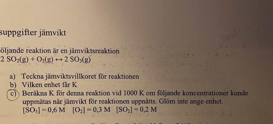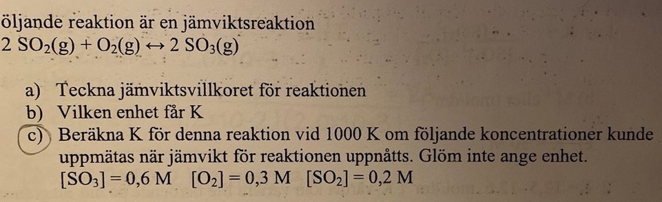 Beräkna K vid 1000 K -kända c vid jämvikt