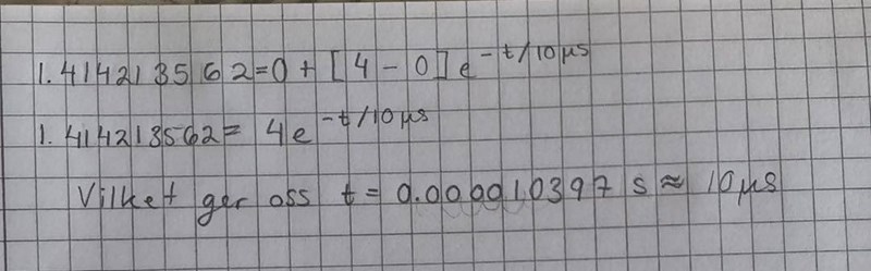 Tänker jag alltså fel när jag beräknar det som 1.414213562 = 4e^-t/10us?