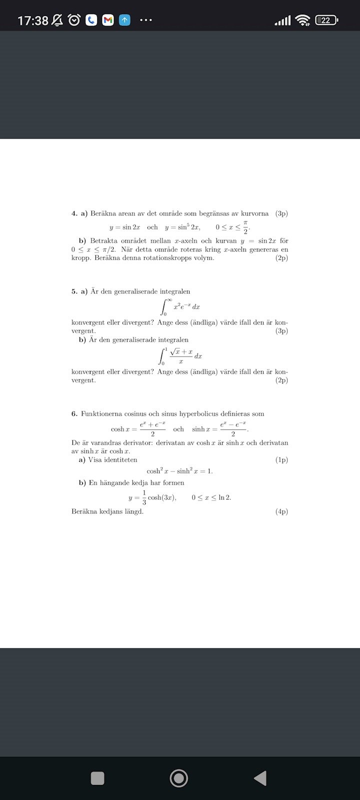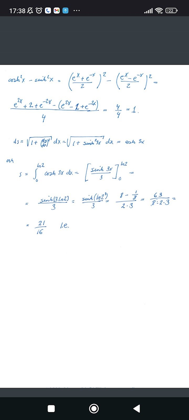 Hej! Jag försöker lösa denna fråga från en gammal tenta (uppgift 6 b) men förstår inte hur de gör efter att de kommit fram till sinhln2^3? Jag tänker mig att de kanske sätter in (e^(ln2) - e^(-ln2))/2 istället för sinh så vi får