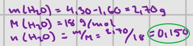 Här har du kommit fram till att du avdunstat 0,150 mol vatten från 0,0153 mol natriumkarbonat.
