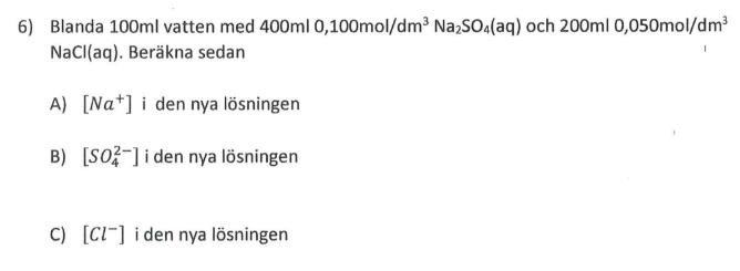 mag1 skrev:För substansmängden i b) behöver du använda bara stuva om den formel du angav, c=n/v till n =c*v. Och du vet koncentrationen SO42-, och volymen.