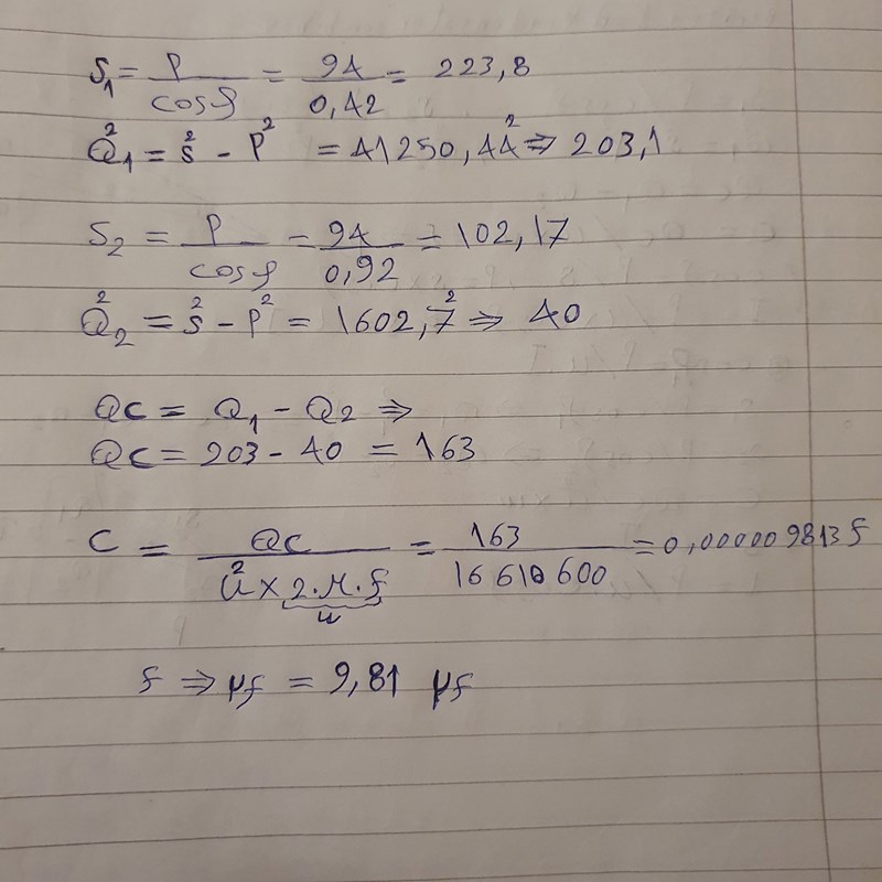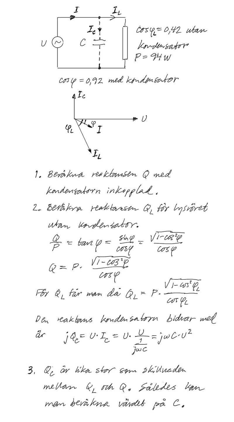 "En lysrörsarmatur har dålig effektfaktor som är 0,42. Man vill nu förbättra den till 0,92.