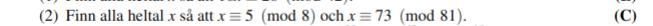 Varför - 81b? Du skrev i början att x=8k+5, håll dig till det. Ingen aning om vad AI gör, men de brukar inte vara så bra på att räkna.