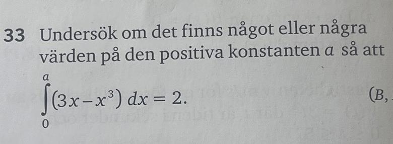 Jag kom fram till att 3a^2/2 - a^4/4 = 2 och prövade mig sedan fram och fick fram att a=2. I facit står det att a= 2 och roten ur 2. Finns det ett bättre sått och göra detta på än att pröva sig fram?