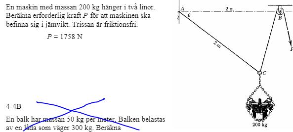 Vad är det man skall beräkna? Är det kraften P eller vinkeln θ? Samtidigt står det att P = 1758 N.