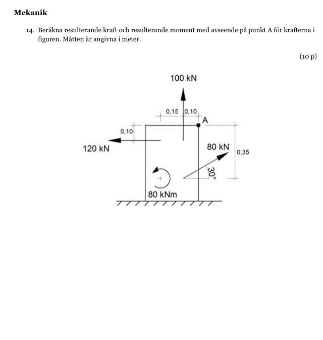 Och för att beräkna momentet så har jag multiplicerat varje kraft med sin sträcka med avseende på punkt A: