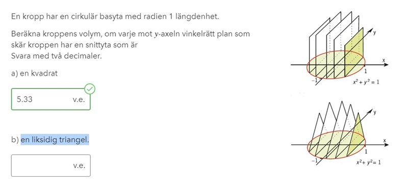 Alla trianglarna har båda sina hörn på cirkeln, precis som kvadraten. Därför blir det samma uttryck för triangelns bas som för kvadratens sida.