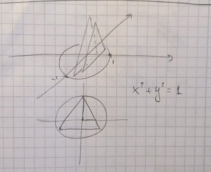 Jag försöker att förstå hur kan jag hitta sidans längd.. I facit står det att triangelns bas är och jag undrar varför då? Jag förstår att kvadratens längd är för att axlarna går i mitten av kvadraten men om jag tänker på hur axlarna går igenom trianglar då tänker jag mig att det ser ut så här: