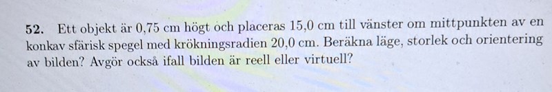 Jag faastnade på denna. Vad menas med läge och orientering av bilden? Hur avgör jag om bilden är reell eller virtuell?