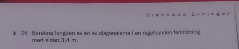 Henning skrev:Är du inte med på att vinkeln mellan diagonalerna är 360/5 ?