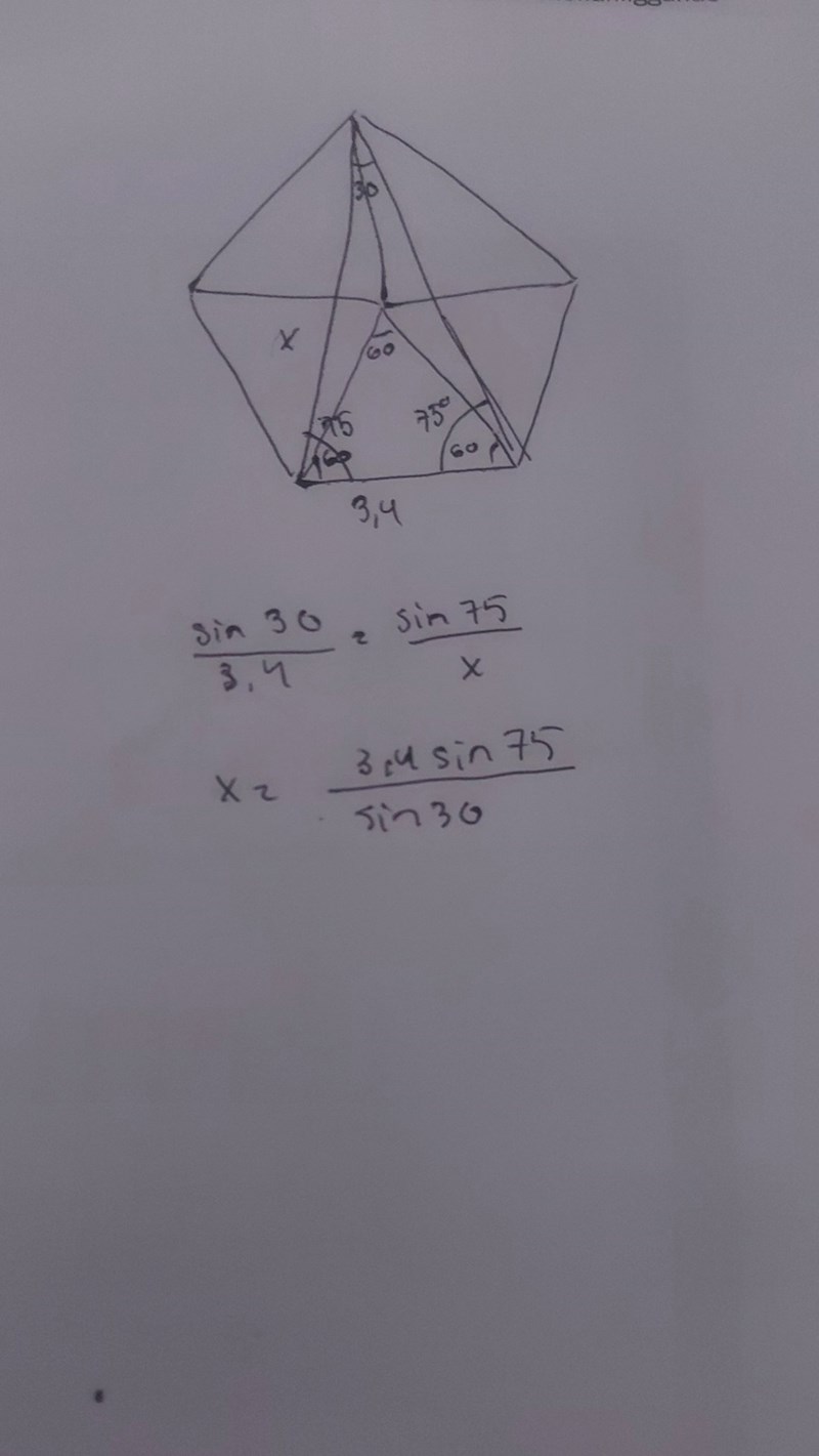 Vinkeln BAC = BCA . En hörnvinkel i en femhörning är 108. Sedan är AC lätt att beräkna.