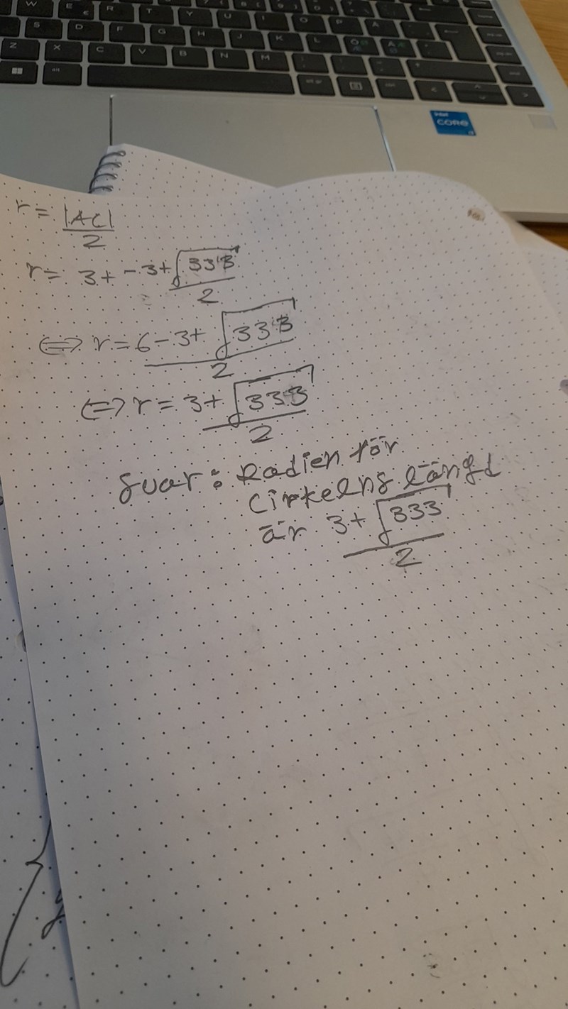 Gjorde jag inte det eftersom jag gjorde väl att radien är väl